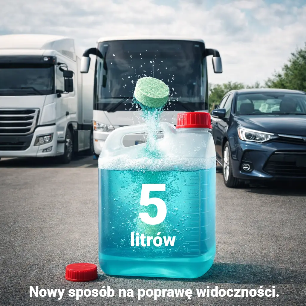 1 tabletka = 5 litrów płynu do spryskiwaczy. Oszczędność miejsca i pieniędzy. Idealne rozwiązanie zarówno dla osób prywatnych jak i dużych firm transportowych, czy flot.